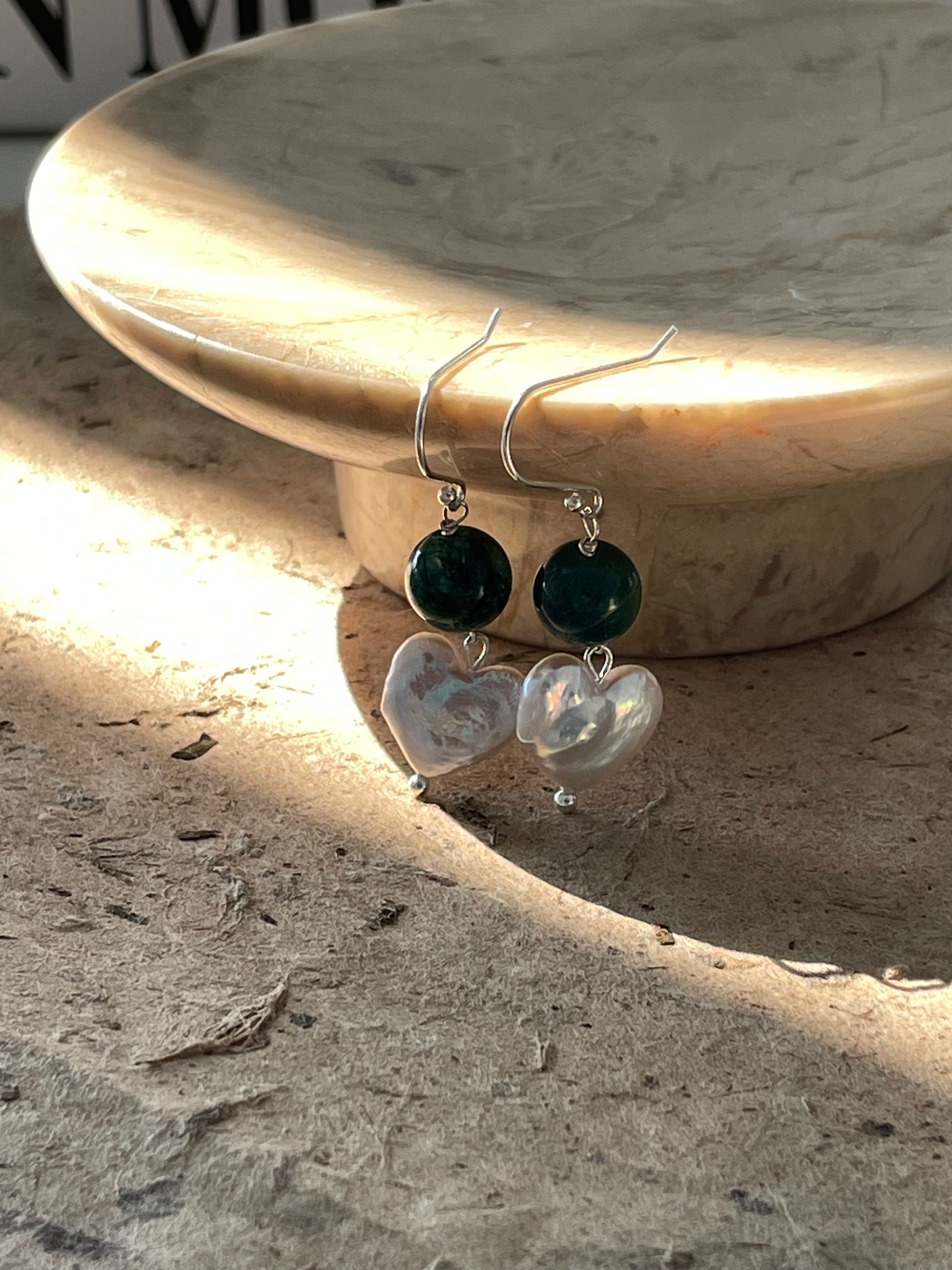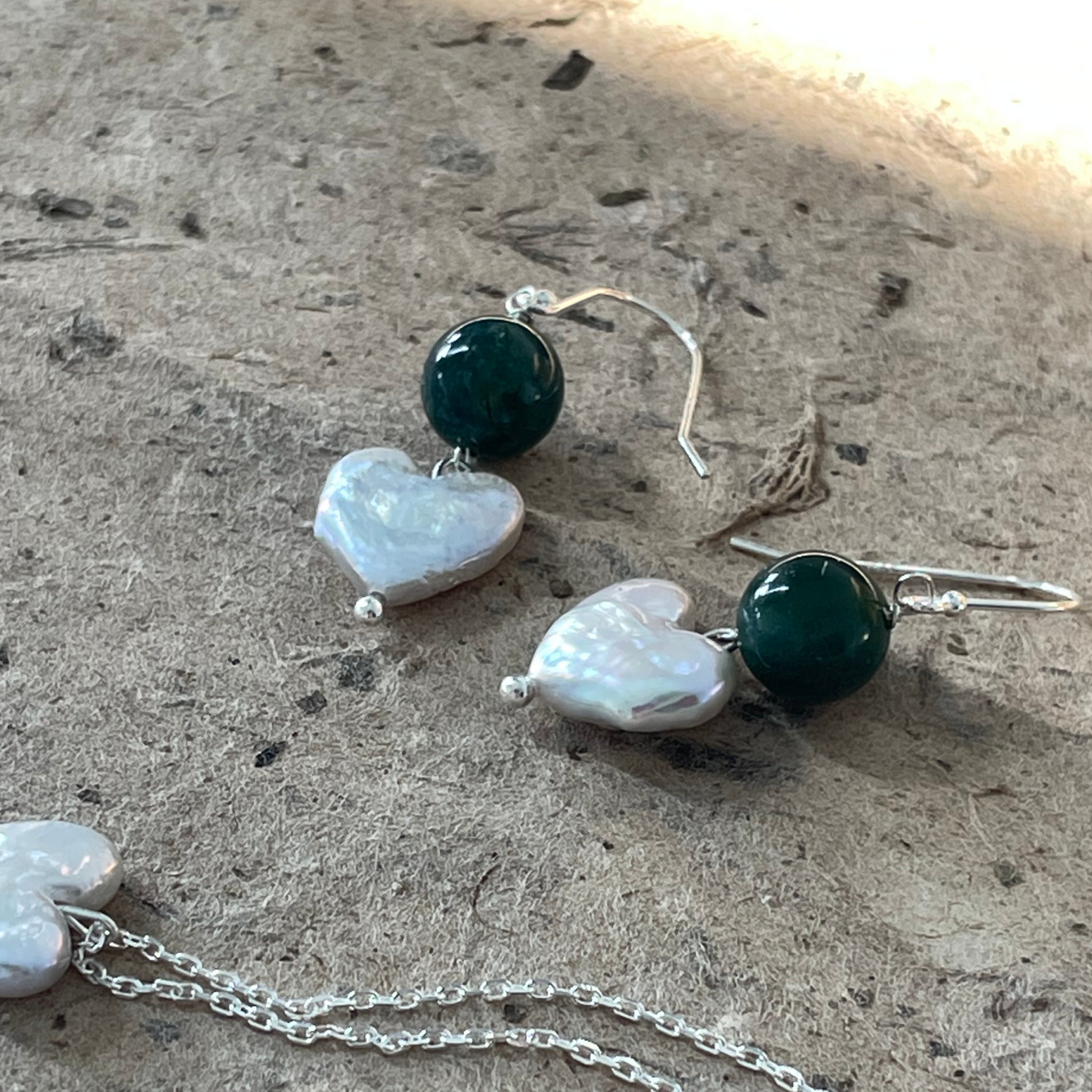 heart-shaped Baroque pearl with green agate